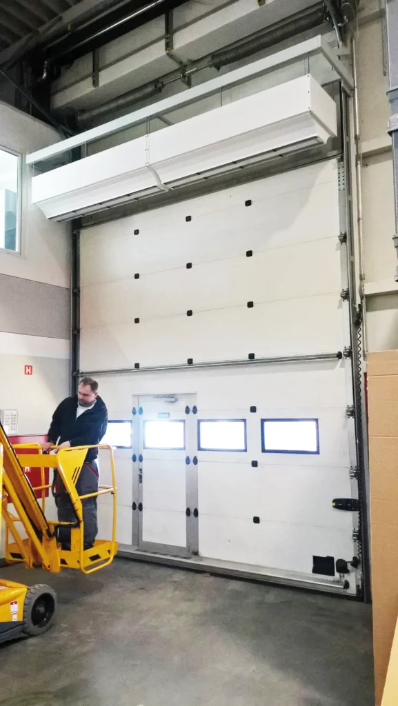 Las cortinas de aire son equipos de ventilación que crean una barrera invisible de aire a alta velocidad sobre puertas y entradas. Sirven para separar dos ambientes diferentes manteniendo condiciones controladas de temperatura, humedad y calidad del aire, evitando pérdidas térmicas y el ingreso de contaminantes externos como polvo, insectos y partículas suspendidas en instalaciones industriales.